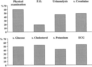 The aim of this study was to investigate the diagnostic approach to recently diagnosed hypertensive patients by primary care physicians in Italy and to find out whether general practitioners manage these patients according to 1999 WHO/ISH guideline recommendations. In total, 228 consecutive patients (117 men and 111 women, mean age 51±12 years) with recently diagnosed hypertension (<2 years) referred for the first time to six outpatient hypertension centres throughout Italy were included in the study. The primary care physicians' approach was evaluated during the specialist visit by a specific questionnaire containing detailed questions about diagnostic work-up and treatment made at the time of the first diagnosis of hypertension. At the study visit, 71% of the patients were on treatment with antihypertensive drugs and 18.7% of them had blood pressure (BP) values lower than 140/90 mmHg. A complete clinical and laboratory evaluation according to the minimum work-up suggested by the guidelines had been carried out in only 10% of the patients. A full physical examination had been performed in 60% of the patients, electrocardiogram in 54%, serum total cholesterol in 53%, glucose in 49%, creatinine in 49%, urine analysis in 46%, potassium in 42%, and fundus oculi in 19%. Additional investigations such as ambulatory BP monitoring, echocardiogram, carotid ultrasonogram, and microalbuminuria had been carried out in a minority of patients (21, 18, 9, and 3%, respectively). The impact on hypertension guidelines on patients' management in everyday primary care practice appears marginal. Thus, our findings indicate that the majority of general practitioners manage hypertensive patients according to a simple BP-based approach rather than a more integrated approach based on global risk stratification.
