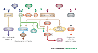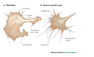 Rho GTPases have been extensively studied in fibroblasts, where their role in the regulation of actin dynamics is well understood. As there are notable similarities between actin-based structures in fibroblasts and neuronal growth cones, the study of Rho GTPases in the context of the neuronal cytoskeleton has gained a lot of recent attention.