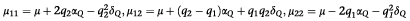 As in the previous section, let μij be the effect of genotype QiQj,i,j=1,2. If μ11=a, μ12=d, and μ22=−a as in the traditional quantitative genetics (Falconer and Mackay16), αQ=a+(q2−q1)d and δQ=2d. For general case, one may form the above relations by letting a=μ11−(μ11+μ22)/2 and d=μ12−(μ11−μ22)/2. It is well known that the additive variance