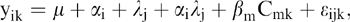 where μ is the overall mean, yik is the UTT of G2 individual k from one of two half-sib families inheriting marker allele i at the locus of concern from the common G1 half-sib parent i, αi is the fixed effect of allelic inheritance at a given marker locus from the common G1 sire or dam, λj is the fixed effect of the non-common G1 parent i in the cross, αiλj is the interaction of alleles from the common G1 parent with the background of the non-common parents, βm is the regression coefficient for each of m covariates not rejected by stepwise backwards regression, Cmk is the value of covariate m for G2 half sib k and ɛijk is the random residual. Where residuals from QTL modelling were non-normally distributed (detected using the Shapiro–Wilk W-statistic (Shapiro & Wilk, 1965)) data were transformed using a likelihood-based macro (BoxGLM; M. Friendly, York University) to normalize residuals before reanalysis. Significance of locus effects were adjusted with simultaneous Bonferroni correction (Rice, 1989) by the total number of independent tests run, resulting in a significance threshold of P=0.05/82 independent G2 half-sib tests=0.0006, excluding cases where it was not possible to differentiate allele identity. Missing data and unassignable genotypes were ignored at all levels of analysis.