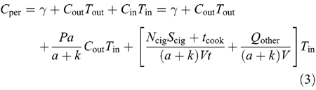 The total exposure model can be simplified by noting that the total PM personal exposure concentration, Cper, for an individual is related to their outdoor particle concentration, Cout, by the equation: