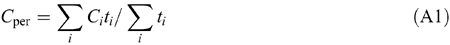where Cper is the average total personal exposure to PM in a specific time period, and Ci is the average PM concentration in a specific location or for a specific activity in the ith location over the time interval ti.
