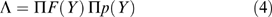 The MLE method determines the distribution that has the maximum probability of drawing a given observed data set as an independent random sample. Let the probability of drawing a sample with value Y be p(Y) and the probability of drawing a sample with a value equal or less than Y be F(Y), where F(Y) is the integral of p(Y) dY between 0 and Y. The likelihood function Λ to be maximized is described by the relationship,