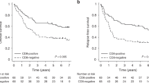 Approximately, 4 μm-thick FFPE tissue sections were stained with haematoxylin and eosin and histopathologically verified by a pathologist. The primary antibody used for PKM2 staining was directed against the specific sequence of exon 9 that is unique to PKM2 (rabbit polyclonal Ab, cat. no. 3198, Cell Signaling, Danvers, MA, USA; dilution 1 : 600). Immunostaining was performed using Ultra Vision LP Quanto Detection System HRP Polymer (Thermo Fisher Scientific, Fremont, CA, USA). Sections stained for PKM2 were previously treated in Tris-EDTA buffer (pH 9.0) for 13 min. Staining evaluation was performed by two independent pathologists (EL and AK) blinded to each other’s scores and to each patient’s clinical information. Staining of PKM2 was scored as the product of the intensity on a scale of 0–5: low and 5.1–8: high expression, as described elsewhere (Yang et al, 2011).