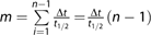 is the length of time between any two adjacent measurements, in terms of the number of half-lives. Let m be the total number of “elapsed half-lives” across all n measurements; thus