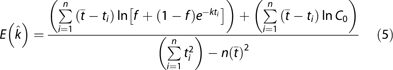 Let f be the fraction of exposure attributed to background sources at baseline, C∞ / C0. Because the expected value of the error term is zero, the expected value of the elimination rate estimate from Eq. (4) is then: