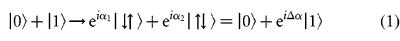 where we write Δα≡α2 - α1. If Δα = 0, we see that the DFS logical qubit is unaffected by the acquired phase. Here the phases αi are themselves unknown, but the ions acquire the same unknown phase, a process called collective dephasing. The logical qubit decoheres only insofar as the dephasing fails to be collective.