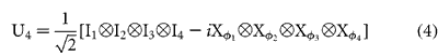 where ions 1 and 2 encode one logical qubit and ions 3 and 4 encode another, and we write Δφ34 = φ3 - φ4. This operator is equivalent to an XOR in the logical basis up to rotations of single logical qubits35, so the operators of equations (2) and (5) suffice for universal quantum logic.