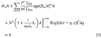 The equation used to model the experiment is the so-called generalized nonlinear Schrödinger equation: