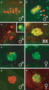 Janzer, B. & Steinmann-Zwicky, M. Cell-autonomous and somatic signals control sex-specific gene expression in XY germ cells of Drosophila. Mech. Dev. 100, 3–13 (2001)