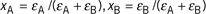 Ratio between the efficiency ɛA in the colocalized case and the efficiency ɛA in the delocalized case as a function of the fraction