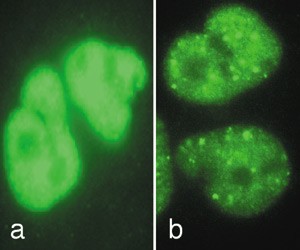 Taniguchi et al. now find that, unlike other FA cells, those that lack FANCD2 (D2) are not only sensitive to MMC, but, similar to AT cells, they also have a problem with their IR-inducible S-phase checkpoint. The authors go on to show that FANCD2 is phosphorylated in response to IR, but not MMC, and that ATM is the kinase responsible. The conserved Ser222 residue seems to be the most critical phosphorylation site in vivo, and a FANCD2 mutant that lacks Ser222 fails to restore IR-inducible activation of the S-phase checkpoint in D2 cells. Interestingly, FANCD2 phosphorylation after exposure to IR does not require other FA proteins or its monoubiquitination site Lys651 (left panel, localization of the Lys651→Arg mutant in response to IR). This finding suggests that, although FANCD2 is monoubiquitinated in response to IR and localizes to nuclear foci (right panel, wild-type FANCD2 localization in response to IR), this is probably not required for FANCD2's involvement in the IR response.
