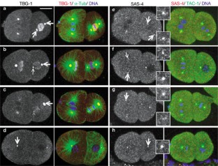 Pelletier, L. et al. The Caenorhabditis elegans centrosomal protein SPD-2 is required for both pericentriolar material recruitment and centriole duplication. Curr. Biol. 14, 863–873 (2004).