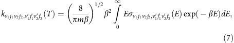 The resulting integral cross-sections were thermally averaged over a Maxwellian kinetic energy distribution to yield state-to-state rate coefficients as function of temperature T,