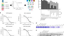 For details on the cloning, sequencing and functional validation of the library of pathway-activating lentiviral cDNAs, refers to Martz et al.18, Science Signaling 2014. cDNA-expressing lentiviruses were produced as previously described35 and used to infect cells at a 1:10–1:20 dilution in 6-well plates in the presence of 7.5 μg ml−1 polybrene. Following virus addition, plates were centrifuged at 1,200g for 1 h at 37 °C. Twenty-four hours after infection, puromycin (2 μg ml−1) was added for selection and cells were incubated for 48–72 h. Cells were then trypsinized, counted, and seeded into 96-well plates at 1,000 cells/well. Twenty-four later, media or tenfold serial dilutions of panitumumab (in media) were added to cells (1:1,000) to yield final concentrations ranging from 680 nM to 0.000068, nM. The Cell Titer Glo luminescent viability assay (Promega) was used to measure cell viability seven days after drug addition. Viability was calculated as the percentage of control (untreated cells) after background subtraction with a minimum of three replicates for each cell line/cDNA/drug concentration. GI50 values were determined as the drug dose corresponding to half-maximal growth inhibition35; as such, the upper bound GI50 value in this assay is 680 nM. GI50 values for unmodified parental cells were determined using the protocol above by seeding cells directly into 96-well plates without the initial infection step.