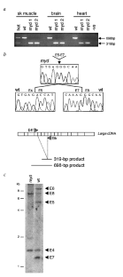 Peyrard, M., et al. The human LARGE gene from 22q12.3-q13.1 is a new distinct member of the glycosyltransferase gene family. Proc. Natl. Acad. Sci. USA 96, 598–603 (1999).