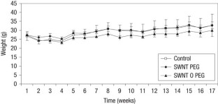 Single-walled carbon nanotubes are currently under evaluation in biomedical applications, including in vivo delivery1,2,3 of drugs4, proteins, peptides5,6,7 and nucleic acids8,9 (for gene transfer10 or gene silencing11), in vivo tumour imaging12 and tumour targeting of single-walled carbon nanotubes as an anti-neoplastic treatment5. However, concerns about the potential toxicity of single-walled carbon nanotubes have been raised13,14. Here we examine the acute and chronic toxicity of functionalized single-walled carbon nanotubes when injected into the bloodstream of mice. Survival, clinical and laboratory parameters reveal no evidence of toxicity over 4 months. Upon killing, careful necropsy and tissue histology show age-related changes only. Histology and Raman microscopic mapping demonstrate that functionalized single-walled carbon nanotubes persisted within liver and spleen macrophages for 4 months without apparent toxicity. Although this is a preliminary study with a small group of animals, our results encourage further confirmation studies with larger groups of animals.