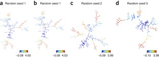 The trees are colored by all 24 subpopulations from Bendall et al. (2011)2 denoted here as subpopulations 1-24. Visual analysis of the SPADE tree branches between different runs and cluster colors will show that the branches and relative positioning of the clusters within a branch are often preserved.