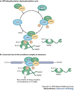 Ohnishi, T. et al. Phosphorylation of hUPF1 induces formation of mRNA surveillance complexes containing hSMG-5 and hSMG-7. Mol. Cell 12, 1187–1200 (2003).