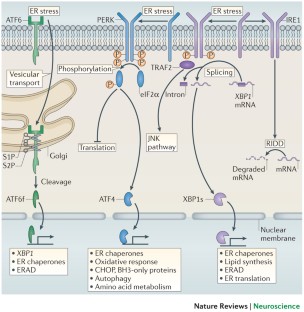 Perturbation of ER function or the UPR may be part of the aetiology of several diseases; that is, disease proteins may directly or indirectly perturb the UPR machinery and alter the function of the secretory pathway at different levels, resulting in irreversible alterations in neuronal proteostasis and degeneration.