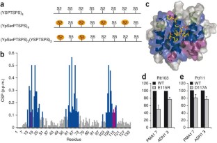 B.M.L. carried out all NMR titration and fluorescence anisotropy experiments with the four-heptad repeat CTD peptides. Diheptad repeat fluorescence anisotropy experiments were done by H.M. H.M. wrote the scripts for fitting the fluorescence anisotropy measurements. B.M.L. and H.M. analyzed the fluorescence anisotropy data. Structure determination of Rtt103-CID was done by S.L.R. Rtt103-CID bound to the Ser2P CTD was determined by B.M.L. Isotope-filtered NMR experiments were collected by T.C.L. All mutants were made by B.M.L., while F.Y. collected and analyzed NMR relaxation experiments. A.M. made the Pcf11-CID and Rtt103-CID constructs and developed the expression and purification conditions. S.B., M.K. and H.S. designed the in vivo ChIP experiments, and M.K. and H.S. constructed the strains and carried out the assays. B.M.L., S.L.R., H.S., S.B., A.M. and G.V. wrote the paper.