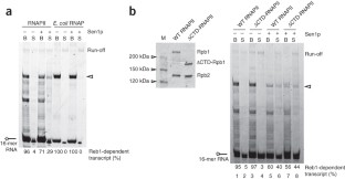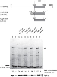 We wish to thank E. Lehman and P. Cramer (Gene Center, Munich, Germany) for initial help with the in vitro transcription assays and for the gift of the His-tagged Rpb3 strain35 and plasmid pET21b(+)-Rpb4-7; F. Fiorini and H. Le Hir (Ecole Normale Supérieure, Paris, France) for the gift of Upf1 variants and help with the ATPase assays; M. Swanson (University of Florida, Gainesville, Florida, USA) for the gift of anti-Nab3p antibody; T. Villa for constructing the DL1774 strain; K. Tanner, M. Boudavillain, T. Villa, E. Pearson, C. Moore and T. H. Jensen for critical reading of the manuscript; M.-C. Daugeron, T. Villa and the other members of the Libri lab for helpful discussions; and S. Buratowski, E. Pearson and C. Moore for sharing results before publication. This work was supported by the Danish National Research Foundation, the French Agence Nationale pour la Recherche (ANR-08-Blan-0038-01, to D.L.) and the French Centre National de la Recherche Scientifique. O.P. was supported by a European Molecular Biology Organization Long Term fellowship and is presently funded by the French Fondation pour la Recherche Médicale. This research was carried out within the scope of the Associated European Laboratory 'Laboratory of Nuclear RNA Metabolism'.