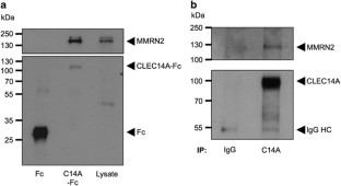 Ki MK, Jeoung MH, Choi JR, Rho S-S, Kwon Y-G, Shim H et al. Human antibodies targeting the C-type lectin-like domain of the tumor endothelial cell marker clec14a regulate angiogenic properties in vitro. Oncogene 2013; 32: 5449–5457.