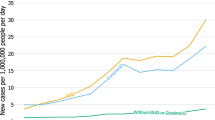 Coronavirus disease 2019 (COVID-19) is caused by severe acute respiratory syndrome coronavirus 2 (SARS-CoV-2) and has rapidly escalated into a global pandemic [1]. The global pandemic of COVID-19 is colliding in the United States (US) with the epidemic of opioid use disorders (OUD) and overdose mortality [2,3,4]. Currently, there is little if any quantitative analysis of the risks and outcomes for COVID-19 infection in individuals suffering from an OUD and those suffering from other substance use in the US. In addition, there is minimal data on how race and other demographic factors affect the risk and outcomes of COVID-19 among patients with SUD including OUD.