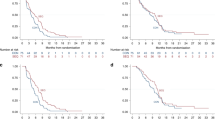 The median overall survival for the control group from the sensitivity Bayesian analysis with minimal borrowing of historical data for the control was higher and closer to the results using only data from this study. The median overall survival was 7.4 months (95% CrI: 5.7–10.0), the posterior median HR for overall survival was 0.83 (95% CrI: 0.59–1.19) (Table 1) and the posterior probability that the HR is <1 was 0.84, just <0.85. Frequentist sensitivity analyses using a Cox regression model adjusted for prognostic factors estimated the HR between the two treatment groups as 0.86, 95% CI: 0.60–1.23 (Fig. 1b, Table 1). No significant differences in progression-free survival were observed between the two treatments based on either investigator assessment or central readings (Fig. 1c, Supplementary Table S3). Previous treatment with gemcitabine was associated with improved overall survival (HR = 0.29, 95% CI: 0.13–0.63; data not shown).