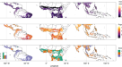 For the tree species data, we also developed an irreplaceability metric to use in addition to considering total richness found on a protected area. Irreplaceability is a site-specific summary statistic obtained from solving an integer programming problem to identify sets of protected sites that, when taken together, allow the most species to be protected63. Irreplaceability is defined to be the proportion of solution sets that contain the focal site and protect as many species as possible given a certain budget. We obtained irreplaceability estimates by formulating a maximum coverage problem64, solving for near-optimal solutions using a genetic algorithm65, and calculating the frequency with which each site occurred in solution sets covering at least 95% of the maximum number of protected species.