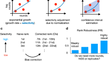 Custom python code was used to process raw sequencing data. First, we leverage the use of 5′-focused mutations by trimming forward and reverse reads to retain sequences near the 5′-end of each read. As a result, we retain reads that may otherwise be discarded in downstream quality-filtering steps due to low Q scores near the 3′-end. Trimmed forward reads contain “CGTCCTGG” and “CCATCTTCA” at their 5′- and 3′-ends, respectively. Trimmed reverse reads contain “GCAGTTGA” and “GCAGAGG” at their 5′- and 3′-ends, respectively. Trimmed sequences containing insertions or deletions were discarded. The remaining sequences were quality-filtered using a minimum quality score of 20. Reverse reads were reverse-complemented and paired to corresponding forward reads by matching the (x, y) coordinate values in the FASTQ sequence identifiers. The processed data for post sort populations 1–4 was analyzed using Enrich2 software with the weighted least-squares scoring method, wild-type normalization method, and a minimum read count of 15. Due to the size of our library, a significant number of loss-of-function mutations are encoded in the naive library; thus, the enrichment rates of functional mutants in the first round of screening will be disproportionately high compared with those in the remaining rounds. As Enrich2 rank-orders variants based on linear regression of log-transformed variant counts, we performed the analysis excluding sequencing data for the naive library to avoid introducing nonlinearity into the fit data. To minimize noise due to low counts, a minimum of 15 reads in the naive library was used as a threshold for calculating variant enrichment rates. Estimation of the nonspecific carryover rate (λ) was carried out as described by Jolma et al.71. Specifically, λ was calculated using the equation fk+1 = λfk, where fk+1 and fk represent the fraction of reads that contain at least one stop codon in a given round and the preceding round, respectively. Codon adaptation index was calculated using open source code72 against the reference set of conserved yeast genes provided by Sharp et al.41. Average error rates and quality scores were determined by initially calculating the arithmetic mean of the error rate for each region of interest. Then, this value was converted to an average quality score. To evaluate the sequencing accuracy for constant bases flanking mutated bases, the sequences “TCCTC” and “AGCT” were used for the forward read, and “TGAT” and “GGGCAG” for the reverse read. Gephi 0.9.2 was used to generate the variant network figures and the force-directed graph. Figure 3a was generated by first running the force atlas algorithm to cluster interconnected nodes, then the Network Splitter 3D algorithm was used to separate variants by enrichment rate into network levels. Figure 3b was generated by masking all nodes, except for SLNIG or TSWIH as well as variants separated by 1 hamming distance from either variant. Figure 3c was generated by first isolating variant TSWLH and variants with lower enrichment rates separated by 1 hamming distance. The force atlas algorithm was used to cluster nodes in the same network level identified previously. The force atlas algorithm was used to cluster highly interconnected nodes.
