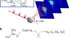 Despite its industrial significance30,31, MTO over zeolite catalysts is a complicated process controlled by sophisticated reaction network and molecular diffusion32,33,34. Carbonaceous species are deposited in the catalyst crystals, leading to the induction, autocatalysis and rapid deactivation. Several methods, for example, solid-state NMR35,36, dissolution/extraction experiments33, and ultraviolet–visible (UV–vis) spectra22,37, have been facilitated to detect carbonaceous species. Nevertheless, at the scale of individual catalyst, the spatiotemporal evolution of carbonaceous species has not been well understood until Weckhuysen et al. first visualized the carbonaceous species in zeolite catalyst for etherification by use of CFM38. They observed the carbonaceous species were mainly formed at the rim of crystal during MTO reaction, and speculated that the transformation of diffusion-limited methanol into carbonaceous species preferentially occurs at the rim of crystal17,39,40. They further found that co-feeding methanol with water can lead to more homogeneous distribution of carbonaceous species throughout SAPO-34 zeolite crystal22 since water may alleviate side reactions and enable methanol to diffuse deeply into the crystal. These finding undoubtedly offer essential insights into the spatiotemporal process of deactivation in MTO reaction. However, they employed model zeolite catalysts with large size of 40 μm due to the constraints of spatial resolution of CFM12,17,40,41. In MTO industrial catalysts, SAPO-34 zeolite crystals of a few microns are typically used, which are, however, out of the measurement scope of CFM. Direct imaging the evolution of molecules and acid sites in catalysts of a few microns, which is highly desired to understand the mechanism underlying MTO process, therefore, is still a non-trivial task.