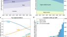 In the Chinese RS, economic growth drives the increase in energy demand and CO2 emissions in both residential and commercial buildings. Heating and cooling demands also increase with economic growth. The cooling demand per unit floor area in China’s northern climate zones rise from 5–7 kWh/m2 in 2020 to 4–19 kWh/m2 in 2050. In the transition climate zones, the heating demands per unit floor area evolve from ~25 kWh/m2 to 10–68 kWh/m2 over the same time period. The DS (High-efficiency) assumes an increasing market penetration of net-zero energy buildings (NZEB), large-scale deployment of high-efficiency appliances, retrofits in the existing buildings (particularly in northern China), and a significant uptake of distributed RES. Furthermore, in the DS, the CO2 emissions intensity of electricity production is reduced from 0.54 kg CO2/kWh in 2020 to 0.09 kg CO2/kWh in 2050, with the share of carbon-free generation sources increasing from 41% in 2020 to 89% in 2050. To leverage the lower-emission electricity from the power grid, an additional DS building electrification scenario was modeled. This scenario reflects a replacement of 50% of coal and natural gas equipment by heat pumps by 2050 for space heating needs in urban commercial and residential buildings in northern China. As a result, 70% of FEC is met by electricity in 2050 (~80% for commercial buildings and ~62% for residential buildings).