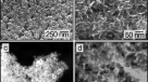 Improvement of the catalyst performance needs optimization of the catalyst layer where the electrochemical reactions occur. For noble metal catalyst sites to be electrochemically active the catalyst layer must be conductive for both electrons and protons, which are produced or consumed by the electrochemical reaction at the sites. At the same time, the layer needs to be permeable to the gaseous reactants as well as to the product water. The essence of the catalytic layer is the three-phase boundaries where the loose Pt/C particles are bonded together by means of polymeric binders, as schematically represented in Supplementary Fig. 1. The catalysts consist of platinum metal particles in size of 2–5 nm supported on carbon black particles of ca. 50 nm. The Pt loading is normally in a high metal 40–60 wt% Pt range in order to reduce the over catalyst layer thickness and hence the mass transportation limitation. The carbon particles usually form aggregates with relatively strong bonding while the aggregates are further forming agglomerates by the weak coulombic attraction. As a result, the catalyst layer contains two types of pores, the primary (small) pores of <10 nm size between carbon particles within aggregates and secondary (large) pores of 10–100 nm size between the aggregates of the agglomerates8.