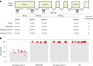 Extended Data Fig. 2 T3 heterozygous ClvR crosses for (a) female ClvRap and (b) male ClvRap.