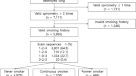 Initially, extracted outcomes of primary interest were respiratory signs and symptoms, as these are important to patients and are the early signs of respiratory disease. Secondary outcomes included: findings on lung function; Computed tomography (CT) findings of emphysema, airway remodeling, and small airway loss; respiratory-related quality of life and exercise limitations; incidence and/or prevalence of respiratory disease as well as exacerbations of previous respiratory disease; and health care resource use including respiratory disease-related ambulatory care, emergency department visits, and hospitalization. Given the limited number of studies available and the heterogeneity of the data extracted from these studies, no meta-analysis was conducted.