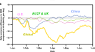 Despite the critical importance of CO2 emissions for understanding global climate change, systems are not in place to monitor global emissions in real time. CO2 emissions are reported as annual values1, often released months or even years after the end of the calendar year. Despite this, some proxy data are available in near-real time or at monthly intervals. High-frequency electricity data are available for some regions (for example, Europe10 and the United States11), but rarely the associated CO2 emissions data. Fossil fuel use is estimated for some countries at the monthly level, with data usually released a few months later1,12. Observations of CO2 concentration in the atmosphere are available in near-real time13,14, but the influence of the natural variability of the carbon cycle and meteorology is large and masks the variability in anthropogenic signal over a short period15,16. Satellite measurements for the column CO2 inventory17 have large uncertainties and also reflect the variability of the natural CO2 fluxes18, and thus cannot yet be used in near-real time to determine anthropogenic emissions.