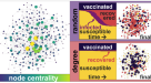 If the preferred intervention scale is at the scale of individual clusters (Fig. 3b), then Fig. 1a can identify and target the most central and potentially influential anti-vaccination clusters. Our clustering theory (see Supplementary Information) predicts that the growth rate of an influential anti-vaccination cluster can be reduced, and the onset time for future anti-vaccination (or connected undecided) clusters delayed, by increasing the heterogeneity within the cluster. This reduces parameter F of our theory, which captures the similarity of pairs of engaged individuals N in a particular narrative. The anti-vaccination (or connected undecided) cluster size C(t) is reduced to C(t) =N(1 − W([−2Ft/N]exp[−2Ft/N])/[−2Ft/N]) where W is the Lambert function20, and the delayed onset time for a future nascent anti-vaccination (or connected undecided) cluster is tonset = N/2F. If instead the preferred intervention scale is at the scale of network patches (single or connected; Fig. 3b), our theoretical framework predicts that the pro-vaccination population (B) can beat the anti-vaccination population or persuade the undecided population (X) within a given network patch S over time T by using Fig. 1a to identify and then proactively engage with the other clusters in S, irrespective of whether they are linked or not: