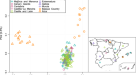 We apply our ancestry-specific MDS method to the Native American ancestry-specific genotypes of Polynesian and American samples genotyped on Affymetrix Axiom LAT-1, Illumina MEGA and Illumina 610-Quad (Supplementary Fig. 14) and also to the European ancestry-specific genotypes of Polynesian indivdiuals genotyped on Affymetrix Axiom LAT-1 together with European samples from POPRES genotyped on the Affymetrix GeneChip 500K and European full genomes from the 1000 Genomes Project (Supplementary Table 3 and Fig. 3a).