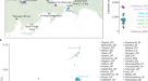 The Native American ancestry in eastern Polynesian individuals shows a very different pattern of interisland IBD sharing, indicating a different history of Native American contact (Fig. 4a, Supplementary Fig. 13 and Supplementary Table 12). To characterize the origin of this ancestry in Polynesia more precisely, we applied a new ancestry-specific PCA to the Native American component (see Methods and Supplementary Figs. 14, 15). The first principal component is found to order the Native American reference individuals along a north–south axis, coinciding roughly with the Pacific coast of the Americas (Supplementary Fig. 14). We plot the density of the Native American reference individuals along this first principal component axis together with the location of the aggregate Native American components for each of the eastern Polynesian islands possessing such ancestry (Fig. 4b). Consistent with our ADMIXTURE analysis, which showed a central Native American component in Pacific islanders, in this analysis the Native American ancestries of the Pacific islanders all fall within, or beside, the Zenu people—an indigenous Colombian population. The localization of the Native American component to Colombia–Ecuador is shown clearly by our new, lower-noise, ancestry-specific MDS analysis, as well as by PCA, and is consistent with the less-sensitive traditional Procrustes analysis and outgroup-f3 statistic (Supplementary Figs. 16–22). The only exceptions are the Rapanui individuals with high European ancestry. As expected, their Native American component, which probably came together with their European component through immigration of admixed Chilean individuals to Rapa Nui, is located squarely within the Pehuenche and Mapuche native populations of central Chile (Fig. 4b and Supplementary Figs. 14, 16, 18–22). The Native American ancestry component in Rapanui individuals with no European ancestry, by contrast, clusters with the Colombian Zenu people, just as with the other eastern islands.