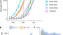 We gratefully acknowledge the assistance of Public Health England in providing the analysis data and authorizing the release of an anonymized dataset. This work was supported by grants from UK Research and Innovation, the National Institutes of Health Research (NIHR) Health Protection Research Unit in Immunisation (NIHR200929) and the UK Medical Research Council (MC_PC_19065) (N.G.D.); Global Challenges Research Fund project ‘RECAP’ managed through Research Councils UK and the Economic and Social Research Council (ES/P010873/1) (C.I.J.); European Commission project ‘EpiPose’ (101003688) and the NIHR (NIHR200908) (W.J.E.); the National Institutes of Health/National Institute of Allergy and Infectious Diseases (R01AI148127) (N.P.J.); a Royal Society-Wellcome Trust Sir Henry Dale Fellowship (218554/Z/19/Z) (K.D.-O.); and a UKRI Future Leaders Fellowship (MR/S017968/1) (R.H.K.). See Supplementary Note 2 for working group acknowledgements.