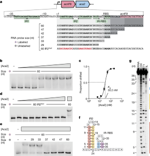 Extended Data Fig. 2 Investigation of the acrIF8–aca2 5′ UTR and its interaction with Aca2.