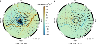The corresponding horizontal crustal motion and its divergence for regions near major ice sheets in the Northern hemisphere are in Fig. 1.
