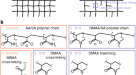 We sought to find an improved gel chemistry capable of providing a larger EF in a single round compared with the traditional fourfold of ExM (Supplementary Note 2). Previously, the X10 protocol6 reported a hydrogel consisting of sodium acrylate (2) (SA) and N,N- dimethylacrylamide acid (3) (DMAA) that allows for EFs of around tenfold in cultured cells and mouse brain slices. However, X10 requires rigorous degassing to remove oxygen before gelling and reportedly cannot expand mechanically tough tissue types even with strong protease digestion6. We show that heavily formalin-fixed human tissues such as FFPE kidney sections did not expand evenly with the X10 gel and could only achieve around sixfold expansion (Supplementary Figs. 2 and 4) using heat denaturation. We then investigated a series of hydrogels by varying concentrations of the monomers DMAA, SA, acrylamide (4) (AA) and the crosslinker N,N′-methylenebisacrylamide (5) (Bis) (Supplementary Note 2 and Supplementary Tables 6–10). We discovered a hydrogel formula that is mechanically sturdy (Supplementary Fig. 4 and Supplementary Table 9), composed of 4% (w/v) DMAA, 34% (w/v) SA, 10% (w/v) AA and 0.01% (w/v) Bis (Supplementary Table 10), capable of expanding FFPE human kidney tissue sections by over 8.5-fold in water and freshly preserved mouse brain slices up to 11-fold after heat denaturation (Fig. 1c and Supplementary Table 6). Using a 1.4 NA ×60 oil immersion objective (around 200 nm Rayleigh limit), we demonstrated a resolving power of around 18 nm (200/11) in an 11-fold expanded mouse brain section stained for total protein content postexpansion with a fluorescently conjugated N-hydroxysuccidimidyl ester (NHS). Under these conditions, we observed well-resolved postsynaptic densities and presynaptic dense projections23, which have been shown through electron microscopy (EM) to be around 56 nm in diameter and spaced roughly 20 nm apart edge-to-edge24, as well as the hexagonal lattice these projections form when viewed on their face (Fig. 1h). The high EF of the Magnify gel allowed measurement of the distance between bassoon and homer—synaptic scaffolding proteins in the pre- and postsynaptic compartments, respectively—in mouse brain tissue expanded around fourfold in PBS using a 1.2 NA ×60 water immersion objective lens. We measured bassoon–homer pair distances in six brain regions (Fig. 1i): primary motor cortex layers 5 (M1 L5) and 6 (M1 L6), primary sensory cortex layers 4 (S1 L4) and 6 (S1 L6), dorsomedial striatum (DMS) and nucleus accumbens (nAc). While the measured pair distances for each region are in line with measurements taken with stochastic optical reconstruction microscopy25, we noted distinct interregion variability, with cortical synapses having both a lower average pair distance and narrower distribution than synapses in either the DMS or nAc. Additionally, we measured synaptophysin and PSD95, synaptic proteins with a smaller edge-to-edge distance than homer and bassoon, in a fully expanded mouse brain slice using a 1.15 NA ×40 water immersion objective lens. Measuring from the edge of the synaptophysin signal (representing the presynaptic active zone) to the center of the postsynaptic density, we found a mean distance of 64.3 nm (Supplementary Fig. 3), consistent with previous reports26.