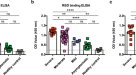 IgG levels in the 19 patients who underwent IgG seroconversion during hospitalization plateaued 6 days after the first positive IgG measurement (Extended Data Fig. 3). Plateau IgG levels varied widely (more than 20-fold) across patients. IgM also showed a similar profile of dynamic changes (Extended Data Fig. 4). We found no association between plateau IgG levels and the clinical characteristics of the patients (Extended Data Fig. 5a–d). We next analyzed whether the criteria for confirmation of MERS-CoV infection recommended by WHO, including (1) seroconversion or (2) a fourfold increase in IgG-specific antibody titers, are suitable for the diagnosis of COVID-19 (using paired samples from 41 patients). The initial sample was collected in the first week of illness and the second was collected 2–3 weeks later. Of the patients whose IgG was initially seronegative in the first week of illness, 51.2% (21/41) underwent seroconversion. A total of 18 patients were initially seropositive in the first week of illness; of these, eight patients had a fourfold increase in virus-specific IgG titers (Extended Data Fig. 6). Overall, 70.7% (29/41) of the patients with COVID-19 met the criteria of IgG seroconversion and/or fourfold increase or greater in the IgG titers.