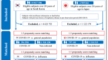 Covariates included a set of variables that were predefined based on previous knowledge4,5,6,7,21,23,25,26,27,30,31,32,33 and a set of variables that were selected algorithmically. Predefined covariates included demographic information (age, race and sex), contextual information (Area Deprivation Index) and measures of healthcare use in the 2 years before T0, which included the number of outpatient visits, inpatient visits, unique medication prescriptions, routine laboratory blood panels and use of Medicare services, as well as a previous history of receiving an influenza vaccination. Smoking status was also included as a covariate. Characteristics of the participants’ health history included record of anxiety, cancer, cardiovascular disease, cerebrovascular disease, chronic kidney disease, chronic obstructive pulmonary disease, dementia, depression, type 2 diabetes mellitus, estimated glomerular filtration rate, immunocompromised status, peripheral artery disease, systolic and diastolic blood pressure and body mass index on the basis of inpatient or outpatient diagnostic codes, medication prescriptions, laboratory values and vital signs. Immunocompromised status was defined according to the US Center for Disease Control and Prevention definitions by a history of organ transplantation, advanced kidney disease (an estimated glomerular filtration rate <15 ml min −11.73 m−2 or end-stage renal disease), cancer, HIV or conditions with prescriptions of more than 30-d use of corticosteroids or immunosuppressants including systemic lupus erythematosus and rheumatoid arthritis.