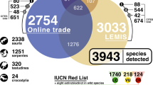 The wildlife trade represents a major threat to the conservation of many species due to the harvest and depletion of wild populations for the purpose of trade in animals and/or their derived products1,2,3,4,5,6,7. Consequently, understanding trade patterns and drivers is essential to mitigating the negative effects of trade on ecosystems, including those on which humanity depends8. Characterization of the direct harvest and subsequent trade in wildlife is conceptually straightforward and should be aided by existing governmental monitoring programs. Currently, however, data on biological resource use are particularly scarce relative to information on other conservation threats, and the utility of existing datasets is often limited by a narrow taxonomic focus9. Furthermore, comprehensive evaluation of the wildlife trade at domestic and international scales is complicated by the existence of both legal trade pathways, which are subject to differing regulations and monitoring effort in different nations, and illegal trade pathways, which are under-detected and under-reported due to their illicit nature10,11. Finally, multi-country wildlife trade data sources, like the CITES Trade Database, can have reporting discrepancies and complex data structures that challenge analysis and interpretation12,13,14,15,16,17,18. Despite these difficulties, efforts to describe and quantify the wildlife trade have scientific value, given the trade’s demonstrated impact on wildlife conservation status2,3,4,6, animal welfare19, the introduction of non-native species20,21,22, and the spread of non-native pathogens, including zoonoses that may threaten human health10,11,23,24.