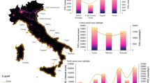 where \(Lo{g}_{{V}_{kd}}\) is the logarithmic transformation of the aggregated kernel density result of VIIRS data \({V}_{kd}\). The number of one was added in Eq. (3) to avoid the invalid values generated during the logarithmic transformation. The magnitude differences between the high and low \({V}_{kd}\) were considerably reduced after this transformation.