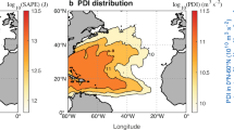 The hurricane potential intensity used in this study is as computed in Ting et al.7 and using the definition developed by Bister and Emanuel in a series of papers8,30,31,32,33. The PI is defined as