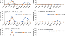 For each study, weather data were obtained from the PRISM dataset32. Weather variables included daily minimum and maximum temperatures (Tmin and Tmax, respectively), and precipitation. In all studies, sowing date as day of year was set to zero and the 30-d specific weather conditions, beginning 30-d before sowing (DBS) up to 150 days after sowing (DAS), and season-wide (0–150 DAS) were calculated.